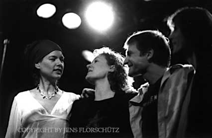 Ebenso souverän agierte die Leaderin. Auch Julia Hülsmanns Pianoparts waren durchaus komplex, doch scheinbar simple und gar nicht spektakulär konzipiert. Die Klasse zeigte sich hier in der Einfachheit und in der Beschränkung der Mittel auf das Wesentliche. Lediglich hätte man sich einen kreativeren Umgang mit den Soundmöglichkeiten ihres Keyboards wünschen können, schließlich war sie bereits in verschiedenen Big Bands, Fusion Formationen aber auch bei Popgruppen wie z.B. „Bell, Book & Candle“ als Keyboarderin engagiert. Etwas anders war es bei Heinrich Köbberling. Sehr angenehm viel seine Percussion-Arbeit auf, für die er einen Fundus an Klanggerätschaften einsetzte. Doch an seinem Drumspiel vermisste man an diesem Abend etwas Spezielles, woran man ihn hätte identifizieren können sowie auch eine differenziertere Schlagtechnik. Schließlich arbeitet auch er sehr erfolgreich als Studiomusiker bei Platten-, TV- und Radioproduktionen. Seine Engagements als Tourneebegleitung reichen bis zu Dee Dee Bridgewater. Doch in der Moritzbastei konnte er nicht durchweg überzeugen. | ||||||
