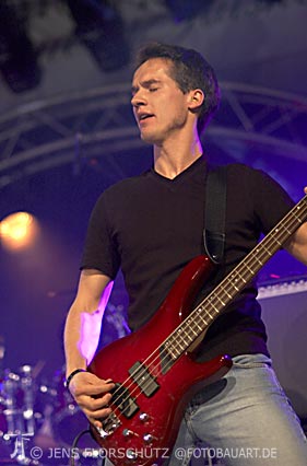 | Im Kontrast zur vorherigen Band kamen ‚Alive’ ganz cool und mit jugendlicher Schnoddrigkeit auf die Bühne, platzierten sich dort und schienen die Anti-Poser sein zu wollen. Die Musik drängte vorwärts, satte Riffs und fette Gitarren bestimmten den Sound. Auf ihren Keyboarder mussten sie heute abend verzichten. Er schlug sich mit den Vorbereitungen zu einem Testat herum. Ihr Set beinhaltete eine vielseitige und differenzierte Melange aus rockigen Hooks und Pop-Anleihen. Vom Schlagzeug wurde die Dynamik fein gesteuert. Die Band, die Wert darauf legt, ihren eigenen Stil zu finden, war bereits 2001 zur besten Schülerband Sachsens des Jahres gewählt worden und Preisträger des Soundcheck-Award des sächsischen Kultusministeriums. 2004 wurde zum 2. Mal das Live On Stage Sommercamp bei Borna durchgeführt, für das sie sich qualifizieren konnten. | |||||||