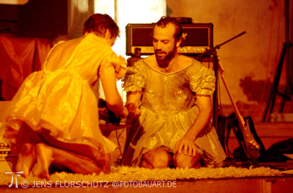 Crazy auch war der Dress von Marek und Jan. Wie zarte Elevinnen im Ballettkleidchen hatten sie zu Beginn die Bühne betreten. Diese Masche zogen sie durch bis zum Schluss. Der morbide Charme des 1912 errichteten Kinos, dessen Zustand den Eindruck macht, als bröckelte hier die Original-Farbe von vor hundert Jahren, passte auf den Punkt. |